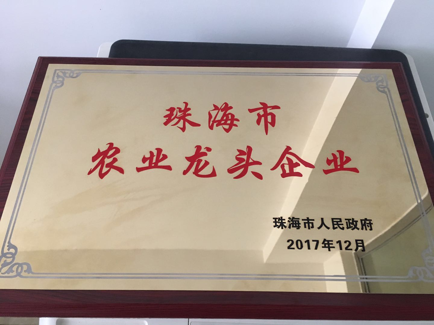 2017年12月,珠海市德海生物科技有限公司正式获得 “珠海市农业龙头企业”证书, 该证书由珠海市海洋农业和水务局和珠海市人民政府颁发。珠海市龙头企业门槛较高,认定须经过严格的测评和审批程序,德海生物凭借过硬的技术实力最终获批成为珠海市2017年第一批珠海市农业龙头企业,这标志着公司在研发和创新方面得到国家相关部门的肯定与认可。